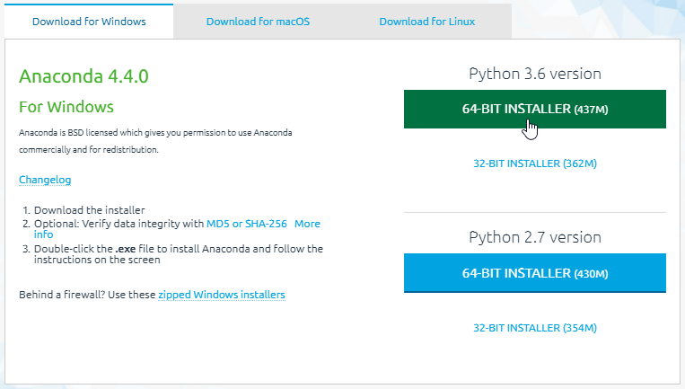 Anaconda 4.4.0 (64-bit) (Python 3.6 TF support / Python 2.7 no TF support))